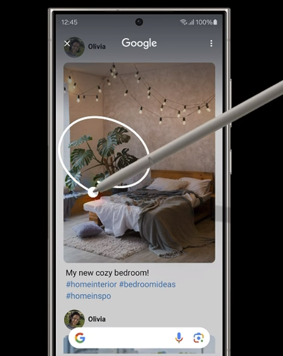 갤럭시 S24 시리즈는 '서클 투 터치'라는 기능을 통해 텍스트, 이미지에 동그라미를 치면 구글 제미나이 AI 챗봇이 알아서 해석을 해주며 내가 사진을 찍어 원하는 제품에 대한 정보까지 한 번에 알 수 있다는 큰 장점이 있다고 하네요.