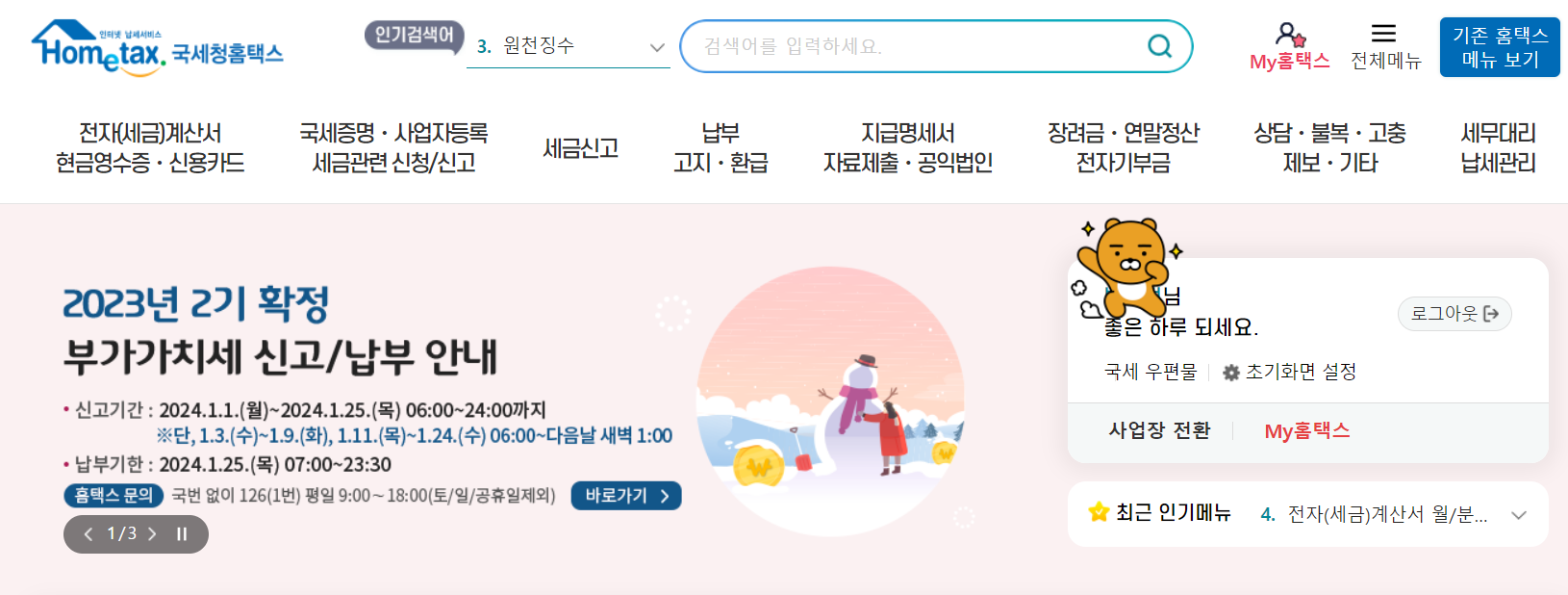 ✅ 사업자 부가세 납부기한 : 2024년 1월 25일 (목) 오전 7:00 ~ 밤 23:30까지