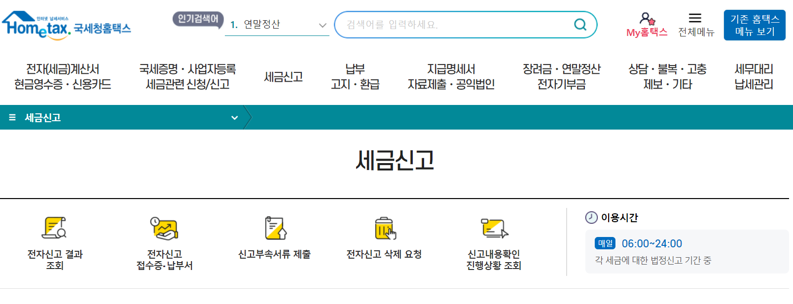 2️⃣ 홈택스 메인 메뉴탭에서 세금신고 메뉴에 접속하시면 됩니다.