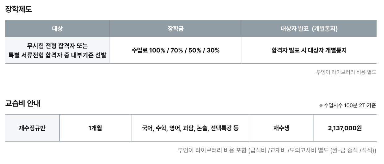 시대인재 재종반, 특별 서류전형과 장학제도는?